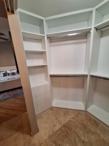 We come help with design our installers will let you know what's possible. Our customers always pay for material and manufacturing of materials at cost, we only charge for installation. That's how were albe to give you the same closet as any major company at half the price!
